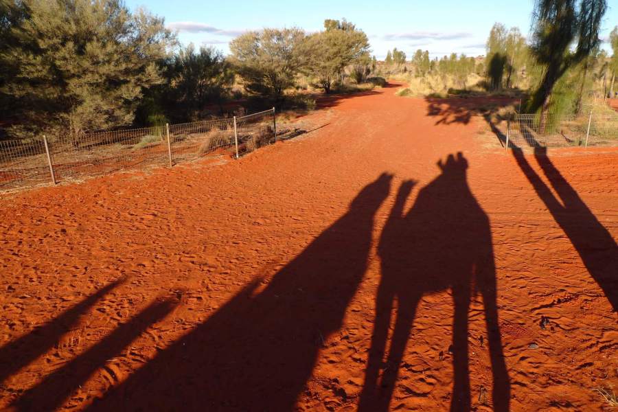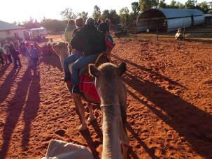 ウルルの見える場所までラクダで移動した後は、ラクダファームにゆっくりと戻ります。