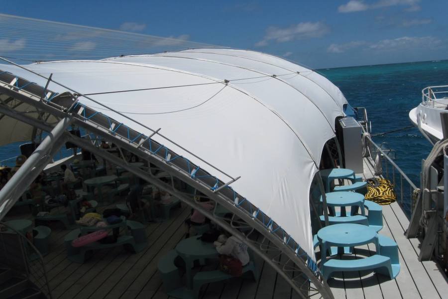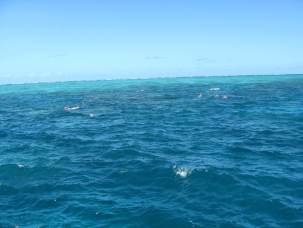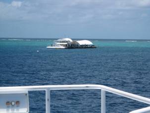 グレートバリア・リーフに浮かぶ巨大な浮島「ポンツーン」に到着。施設内の説明をきいて自由行動になります。