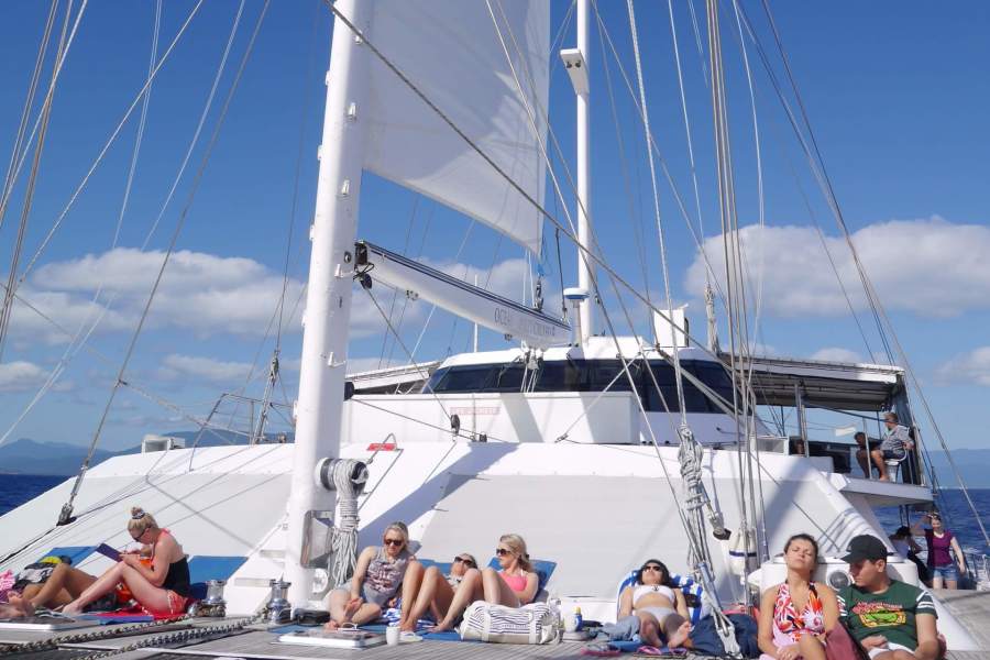 Michaelmas Cay (ミコマス・ケイ)は、グレートバリアリーフに浮かぶサンゴ礁の島。ケアンズから43km離れています。移動中の船ではビュッフェランチやスパークリングワインサービス付でゆっくりと船に揺られながら1日を楽しむことができます。女子旅やカップル旅行のお客様に人気です。