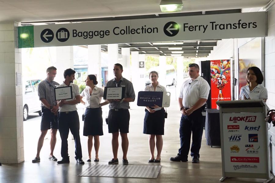 ハミルトン島に到着後は、空港内でハミルトン島の日本人スタッフと合流します。スタット一緒にホテルへシャトルバスで移動します。