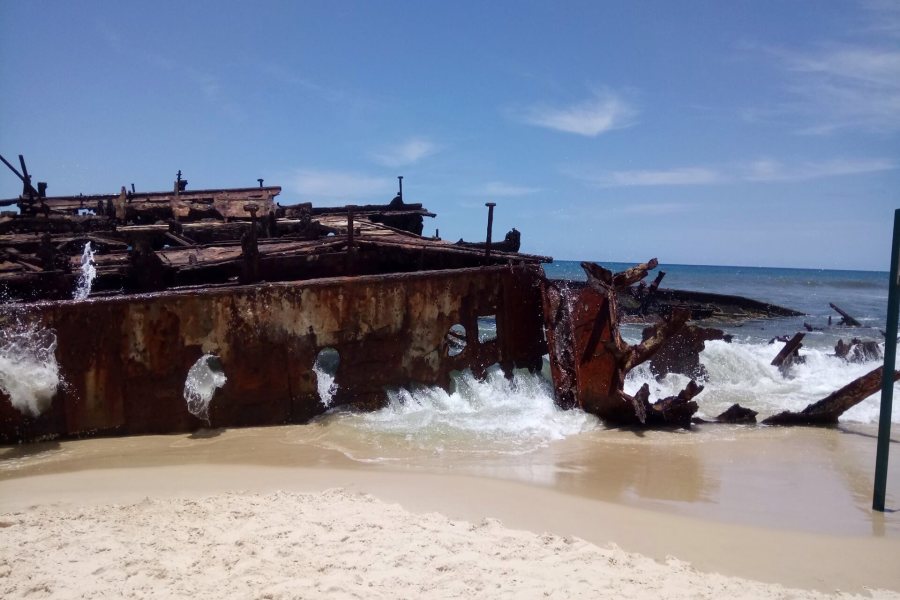 元々はニュージーランドとオーストラリアを行き来する船でしたが、スクラップ処分される際、日本へ曳航される際にサイクロンに遭い、この場所へ打ち上げられたそうです。現在ではフレーザー島観光名所の一つとなっています。