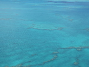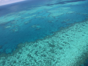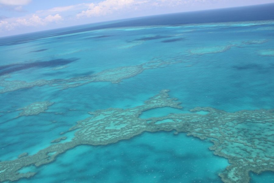 ハミルトン島周辺の諸島を見学しながら、すぐに世界遺産グレートバリアリーフの上空に」到着。絶景をお楽しみください。