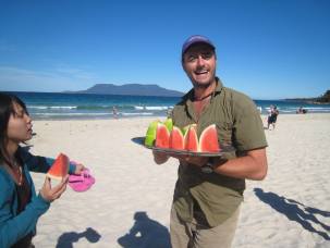 ワイングラスベイはタスマニアで最も訪れる旅行者が多い国立公園の一つフレシネ国立公園の中に位置してます。ホバート発のツアーのなかでも一番人気の行先です。その名の由来する通り、ワイングラスのようにきれいな曲線を描くワイングラスベイの他、ハネムーンベイやカキ養殖をしているファーム、ベリーファームにも立ち寄ります。