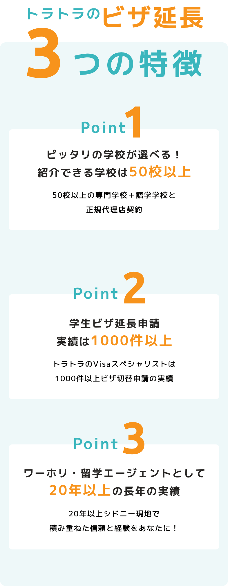 ビザ取得後も学校でのトラブルや状況の変化など引き続きご相談いただけます。長期で滞在を延長する場合、支払いが3ヶ月毎にあるので、その際元気に学校へ行っているか報告してくださいね。
