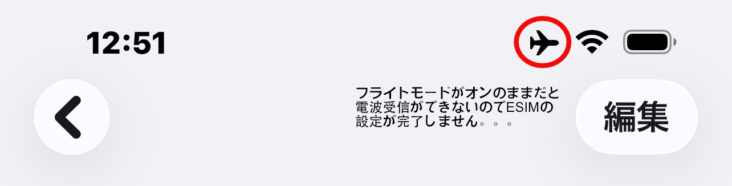 オーストラリア到着後、フライトモードがオンのままだと電波受信gあできないため、ESIMの設定が完了できません。。。