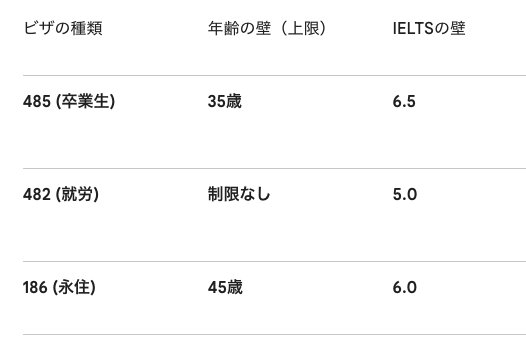 ここでIELTSの壁と年齢の壁に注意してほしい対象者は、オーストラリアで2年間Diplomaなどで修学し、卒業生ビザ485の申請条件を満たした方を対象とします。