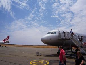 10時間30分前までに国内線ターミナルでチェックイン。身分証明書必要。飛行機でエアーズロック空港に移動。空港でのセキュリティーチェックに長蛇の列ができますので、国内線の場合でも早めに空港に到着してチェクインを済ませて下さい。