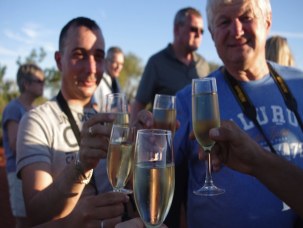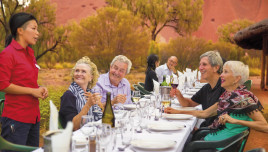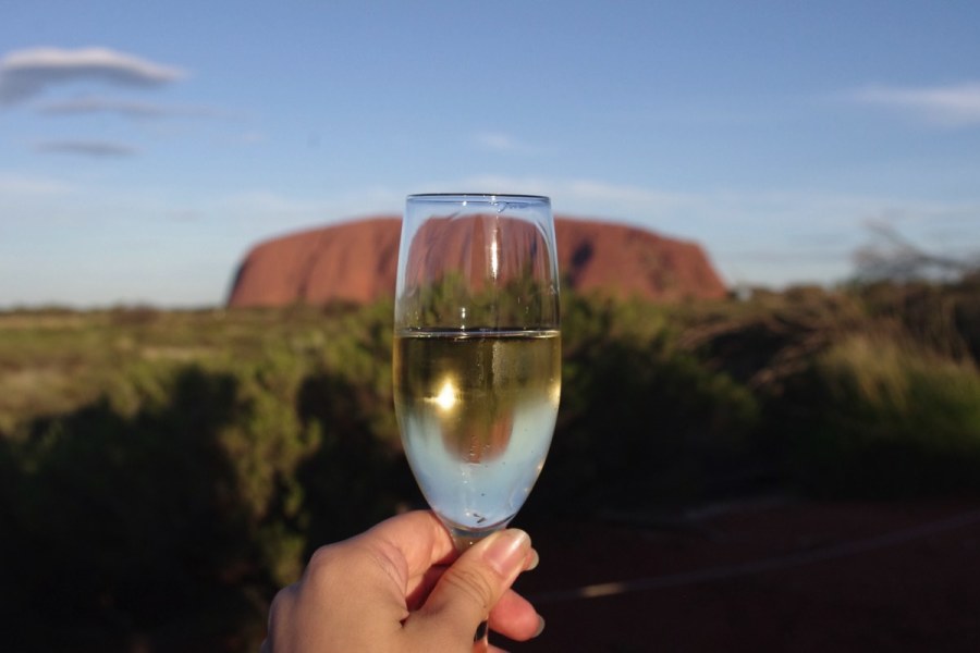 エアーズロックでサンセットを鑑賞するツアーです。スパークリングワインを片手に、美しいウルルの日没の空をお楽しみいただきます。