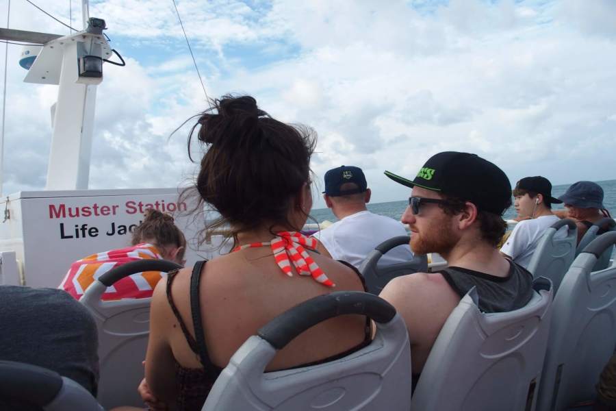 高速フェリーでケアンズの街を出発します。フィッツロイ島まで約1時間のフェリーの旅をお楽しみください。