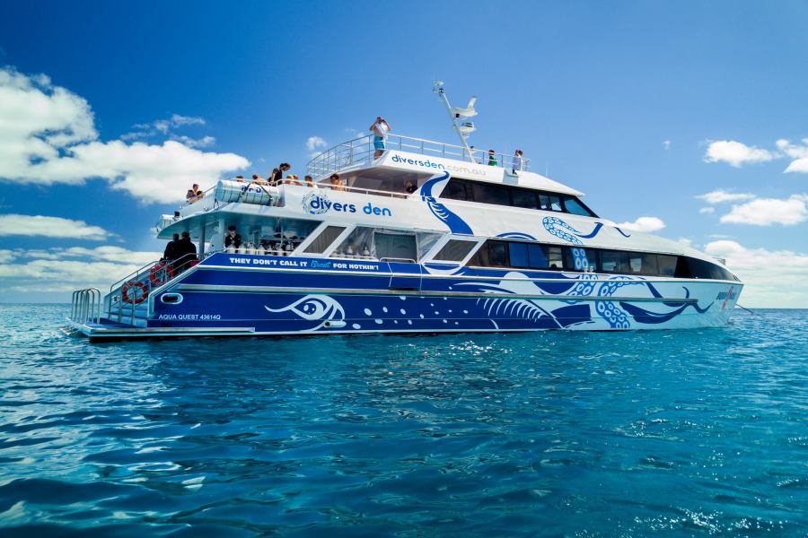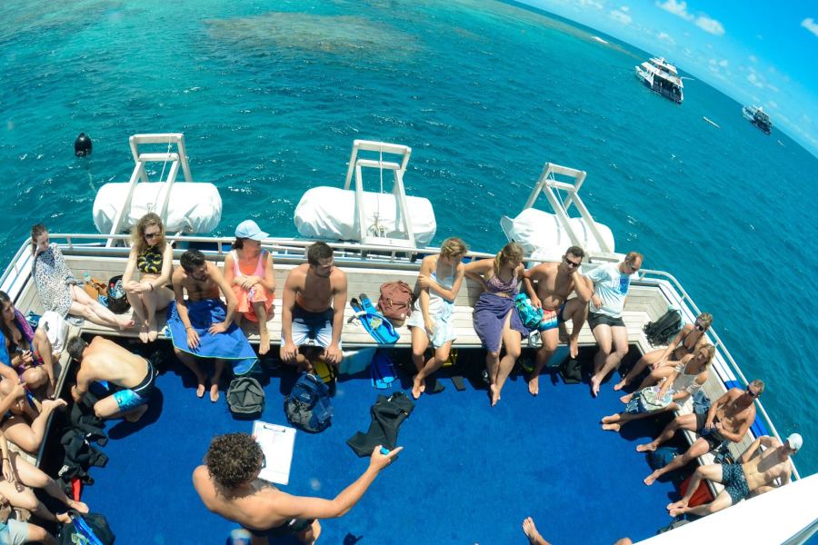 リーフフリートターミナル先の船着場Bから入って船上でチェックイン。グレートバリアリーフに出発!船内で安全に関するブリーフィングを受けていただきます。90分間のクルーズをお楽しみください。