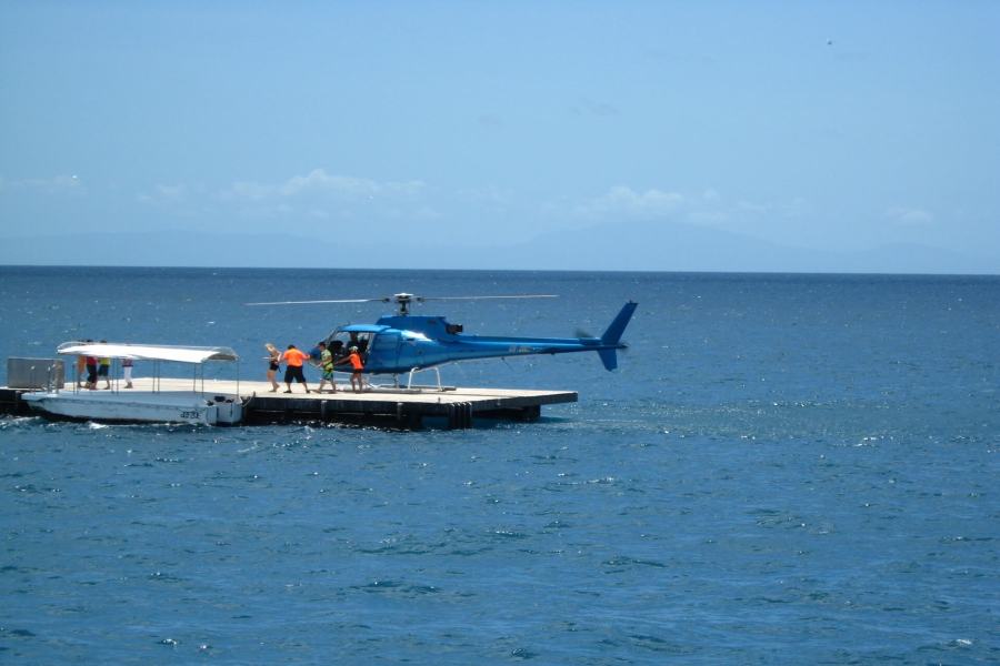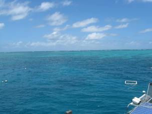 グレートバリア・リーフに浮かぶ巨大な浮島「ポンツーン」に到着。施設内の説明をきいて自由行動になります。
