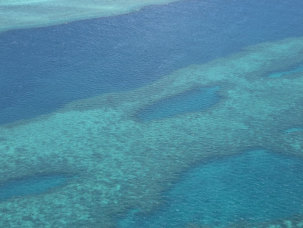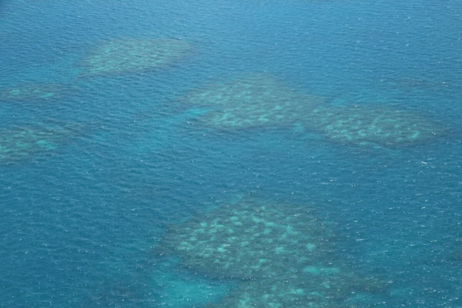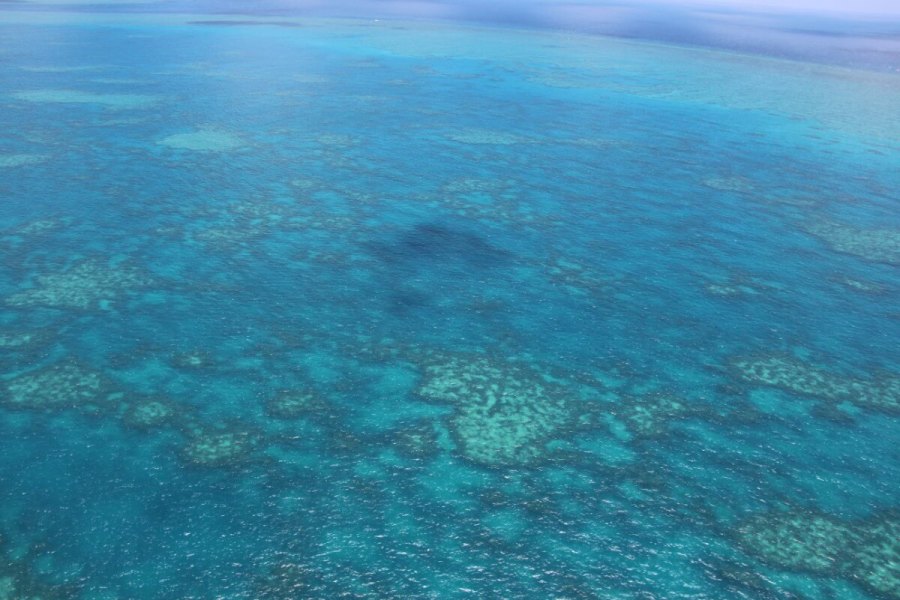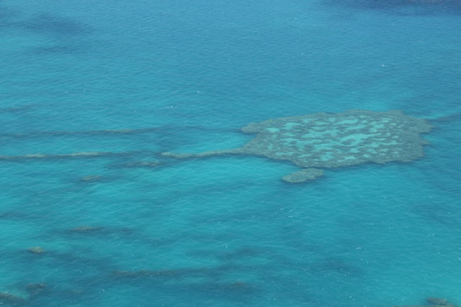 ハミルトン島周辺の諸島を見学しながら、すぐに世界遺産グレートバリアリーフの上空に」到着。絶景をお楽しみください。