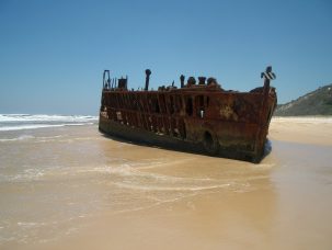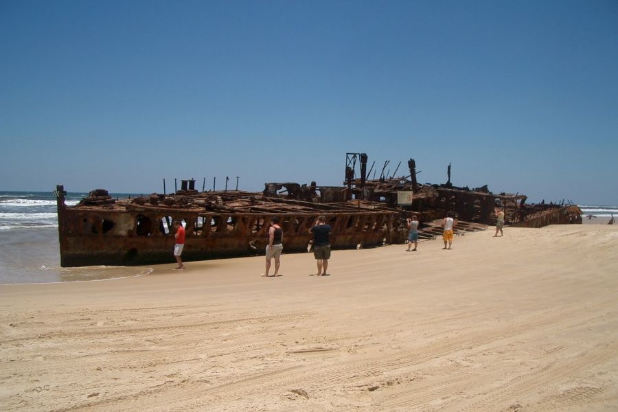 元々はニュージーランドとオーストラリアを行き来する船でしたが、スクラップ処分される際、日本へ曳航される際にサイクロンに遭い、この場所へ打ち上げられたそうです。現在ではフレーザー島観光名所の一つとなっています。