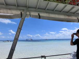 ケアンズに向けて船が出発します。船内ではツアー中の写真の販売やアフタヌーンティーのサービスがあります。