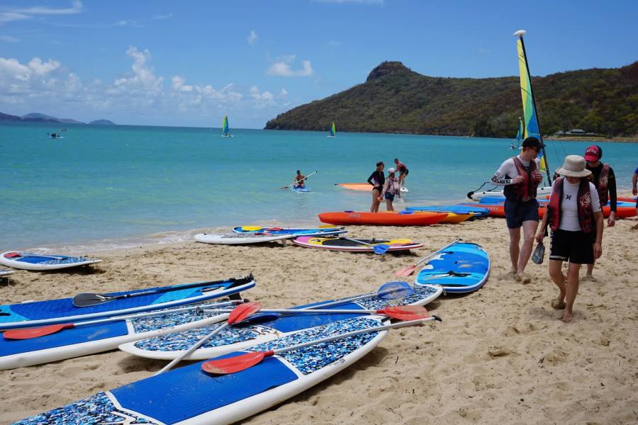 ハミルトン島に戻るためにホワイトヘブンビーチを出発します。忘れ物がないように注意してください。