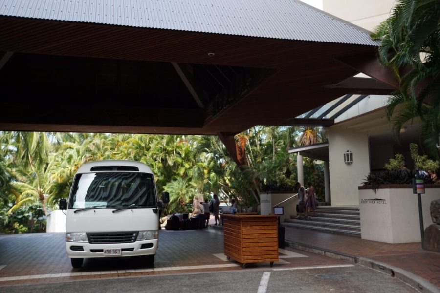 ハミルトン島に到着後は、空港内でハミルトン島の日本人スタッフと合流します。スタット一緒にホテルへシャトルバスで移動します。