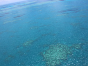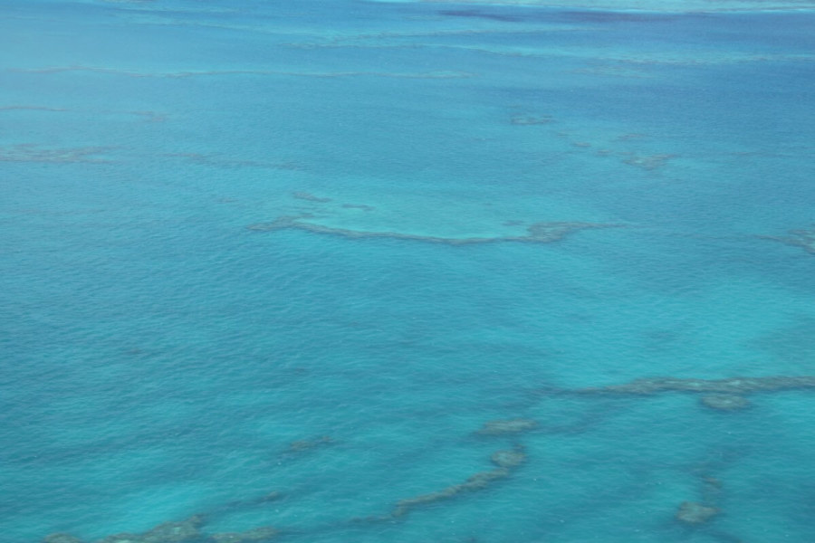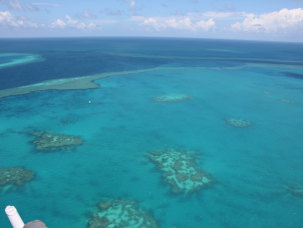 ハミルトン島周辺の諸島を見学しながら、すぐに世界遺産グレートバリアリーフの上空に」到着。絶景をお楽しみください。