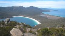 ワイングラスベイはタスマニアで最も訪れる旅行者が多い国立公園の一つフレシネ国立公園の中に位置してます。ホバート発のツアーのなかでも一番人気の行先です。その名の由来する通り、ワイングラスのようにきれいな曲線を描くワイングラスベイの他、ハネムーンベイやカキ養殖をしているファーム、ベリーファームにも立ち寄ります。