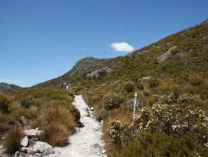 途中休憩を入れながら、世界遺産クレイドルマウンテンの麓に到着。30分ウォーキングをしてガイドと一緒にエコツアーに参加。